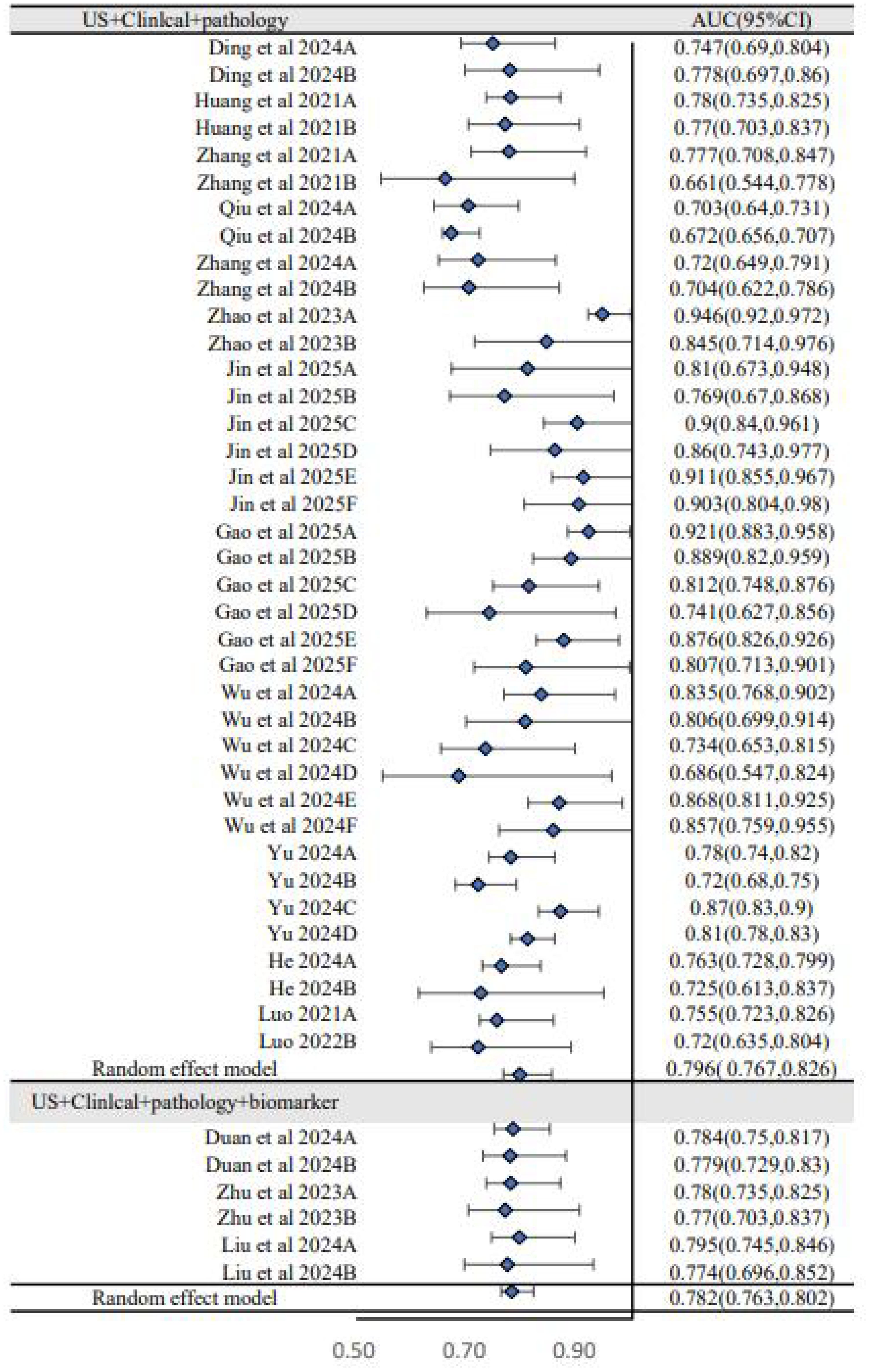 Figure 4. Subgroup analysis of forest plot (US+clinical+pathology versus US+clinical+pathology+biomarker).