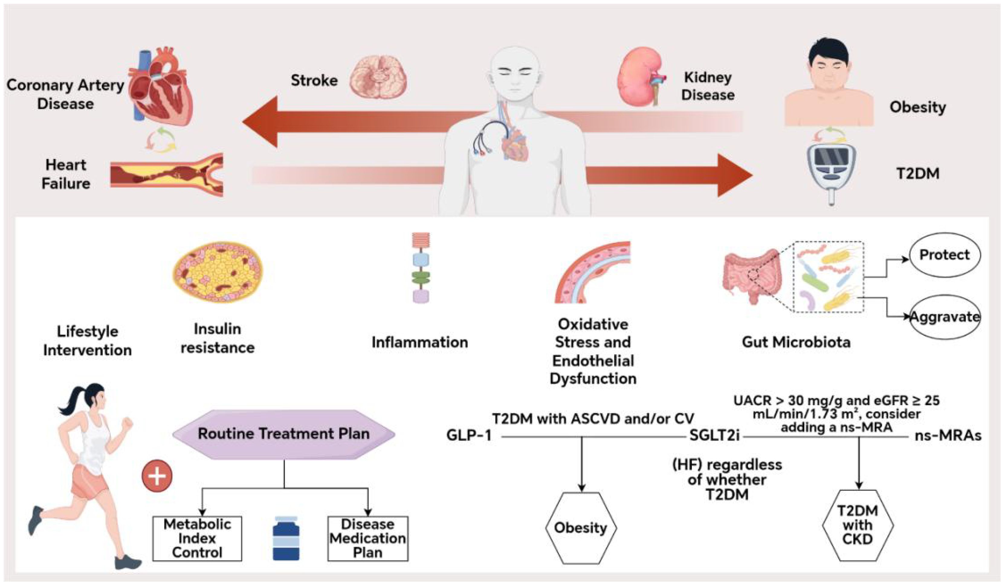 Against this backdrop, the present review systematically summarizes recent advances (2020–2025) in the understanding of pathophysiological mechanisms underlying CMM. Special emphasis is placed on the clinical evidence and application of various therapeutic agents, including sodium-glucose cotransporter-2 (SGLT2) inhibitors and glucagon-like peptide-1 receptor agonists (GLP-1 RA), in the management of CMM. This review also seeks comprehensive clinical strategies for the optimization of multimorbidity care. To provide certain guiding significance for the precision medicine of comorbid populations.