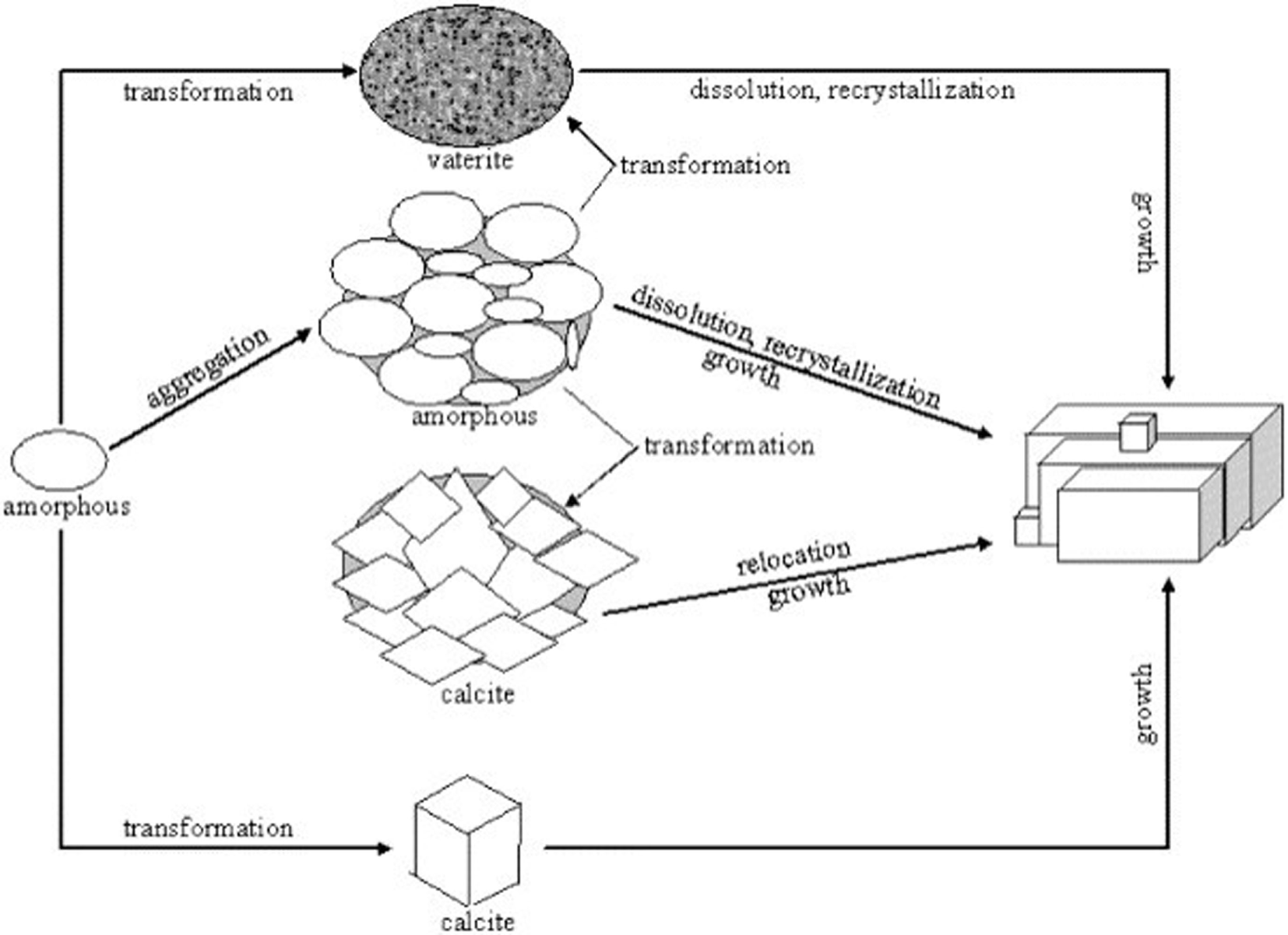 Polymorph formation mechanism of the precipitated calcium carbonate, adapted from Wei et al. (2003). It is being reproduced with permission from the copyright holder.