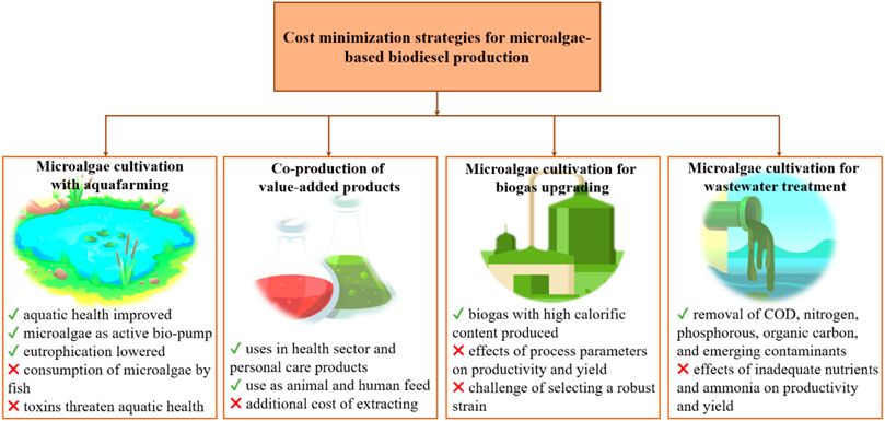 Figure 1. Cost minimization strategies for large-scale microalgae-based biodiesel production.