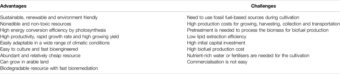 Table 1. Advantages and disadvantages of microalgae-based biofuel (Vassilev and Vassileva, 2016).