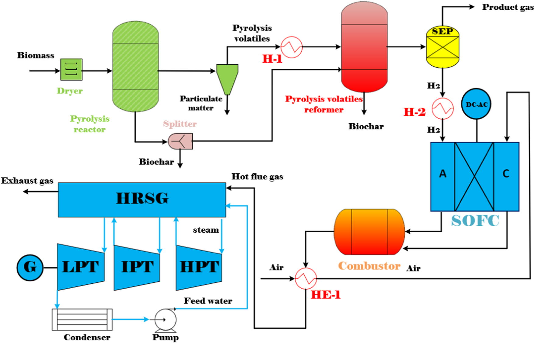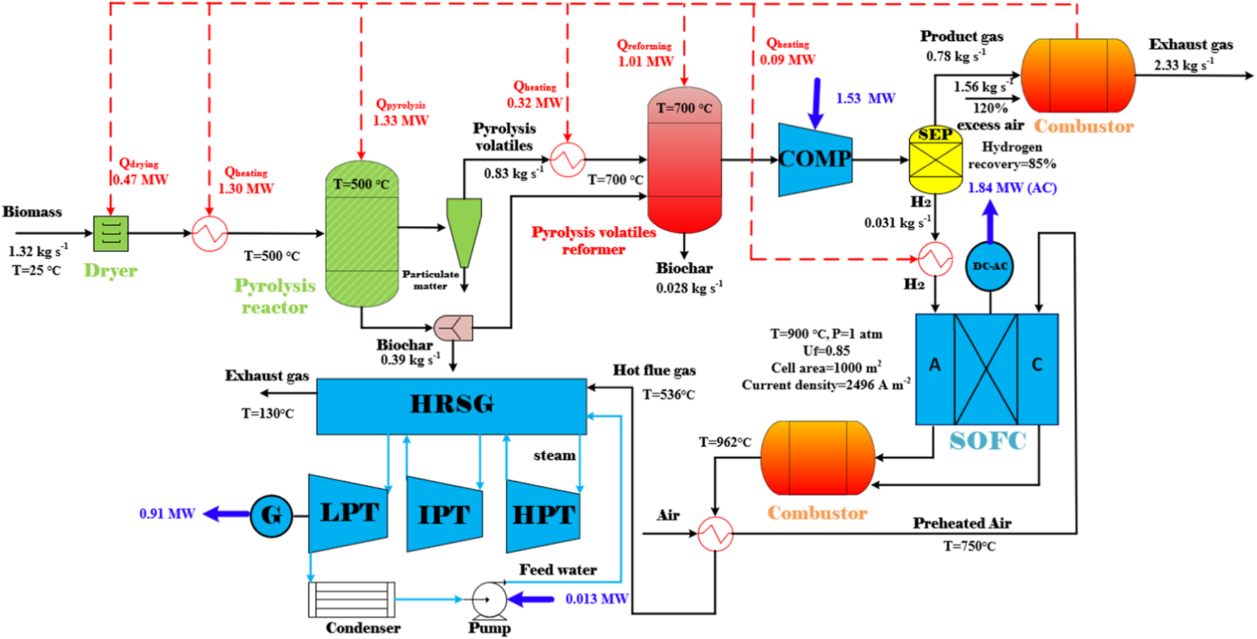 Kuo P-C, Illathukandy B, Özdemir F, Woudstra T and Aravind PV (2022) Thermodynamic analysis of a novel integrated biomass pyrolysis-solid oxide fuel cells-combined heat and power system for co-generation of biochar and power. Front. Energy Res. 10:731191. doi: 10.3389/fenrg.2022.731191