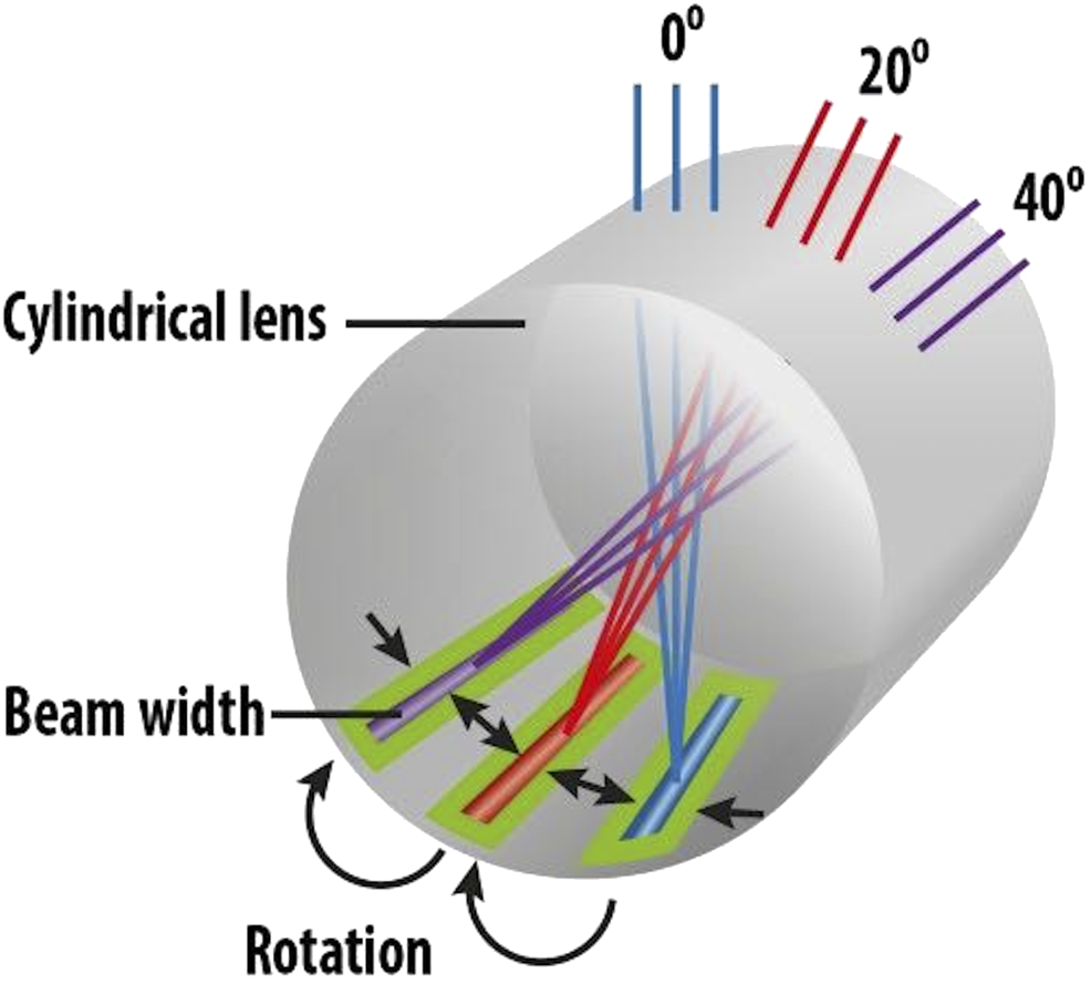 A line-focus concentrator based on continuous rotation of a cylindrical lens focusing onto a “strip” of solar cells (Lee et al., 2019).