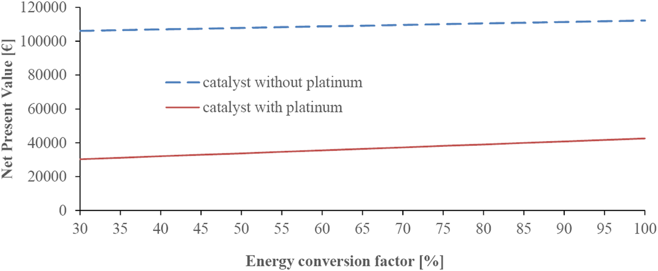 It is noted that the catalyst cost per Watt increases significantly as the catalyst loading increases in a linear trend (Santoro et al., 2018b).