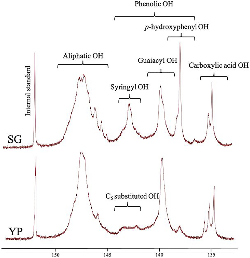 Quantitative 31P NMR spectra of SG and YP lignin samples.