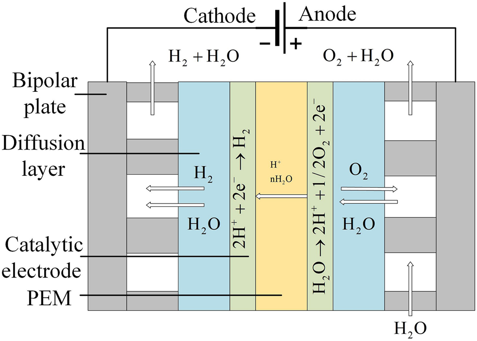 Schematic diagram of PEMEC’s single electrolytic chamber reaction principle.