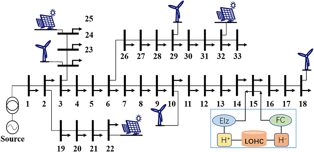 It is very important to study the relationship between power systems and the application of hydrogen. Hydrogen production by electrolysis is considered to be one of the most efficient forms of hydrogen supply. In recent years, there has been a great deal of research into the use of renewable energy sources to produce hydrogen from abandoned electricity. China has the largest installed capacity of photovoltaic and wind power, and the renewable energy supply and demand show an inverse distribution trend. The installed wind power capacity in the “Three North” region accounts for 80%. The demand of electricity is concentrated in the central and eastern parts of China, which leads to an imbalance between electricity production and consumption (Liu et al., 2020; Qiu et al., 2022). The high penetration of renewable energy may cause intermittency and reliability problems for the grid. Microgrids provide efficient energy management for the integrated use of various distributed power sources, such as wind turbines and photovoltaics (Wang et al., 2013). Distributed generations are connected to the microgrid as a power bi-directional controllable aggregator. The distribution network does not have to directly face different types and nature of generating units (Zhang et al., 2017). The reliability and economy of distributed generations are enhanced. By using multi-energy complementarities and energy laddering (Wu et al., 2017), the energy utilization efficiency of the entire distribution network is eventually improved, and pollution emissions are significantly reduced (Jia et al., 2015; Li et al., 2015; Zhou et al., 2018).