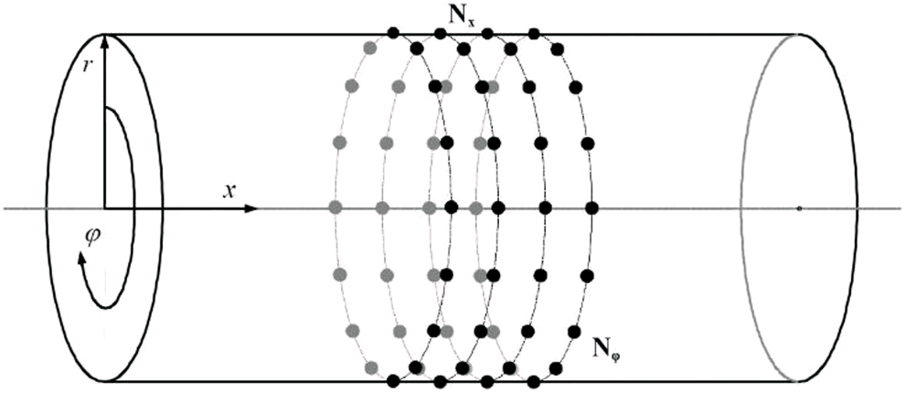 In the frame of the numerical study, four substantially different arrangements of point-like monopole sources, denoted by Latin numbers I–IV, are investigated. The detailed information of source configurations is displayed in Table 1. The main difference lies in the number of axial sensor rings and also the total number of point-like monopole sources. At each sensor, the position time series of 700 FFT windows are used in the numerical process.