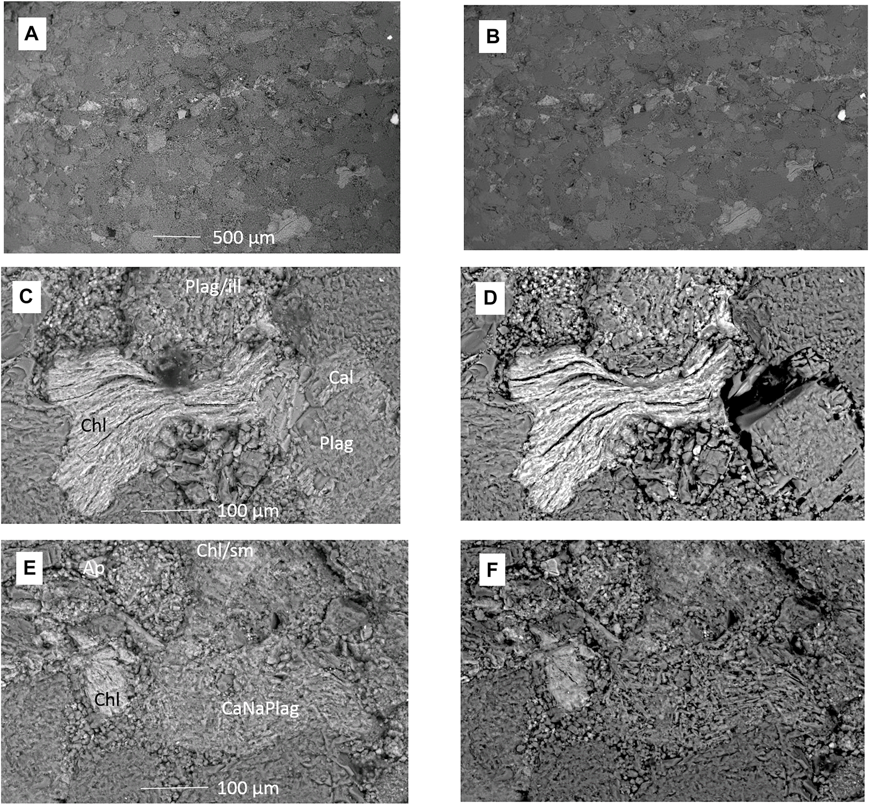 Sixteen Evergreen Formation drill cores from the West Wandoan 1 well were powdered and subject to fusion and total acid digestion for major, minor, and trace element concentrations using previously reported methods (Golding et al., 2019). Inductively coupled plasma optical emission spectroscopy (ICP-OES) was used for major and minor elements, with inductively coupled plasma mass spectroscopy used (ICP-MS) for trace elements. Scanning electron microscopy with energy dispersive spectrometry (SEM-EDS) was performed in back scatter electron mode using a low-vacuum JEOL6460LA environmental SEM or a Hitachi TM3030 with a Bruker EDS. SEM-EDS was performed on both uncoated polished thin sections and on the core blocks, both pre- and post-reaction to directly observe any mineral alteration and corrosion. Images and elemental spectra of mineral surface spot analyses were obtained.