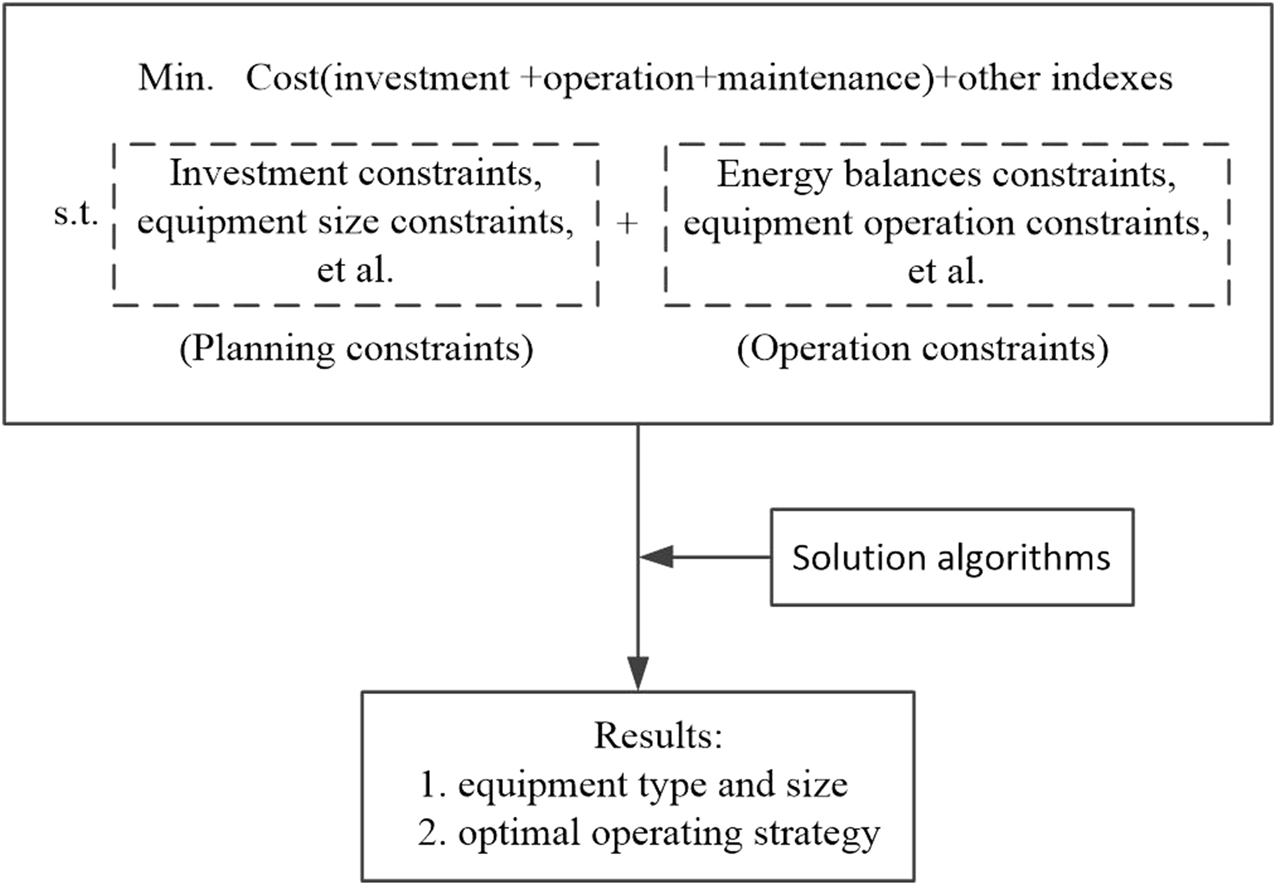 The centralized architecture refers to the unified construction and solution of the model to obtain the equipment type and size and the optimal operation strategy, as shown in Figure 3