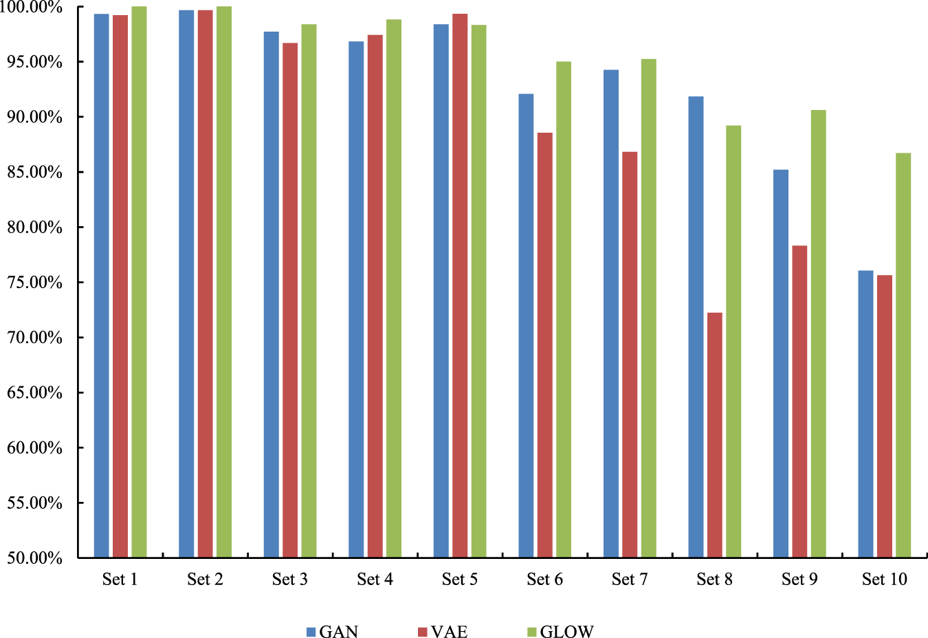 Fault diagnosis accuracy of supplemented sample sets with different deep generative models.
