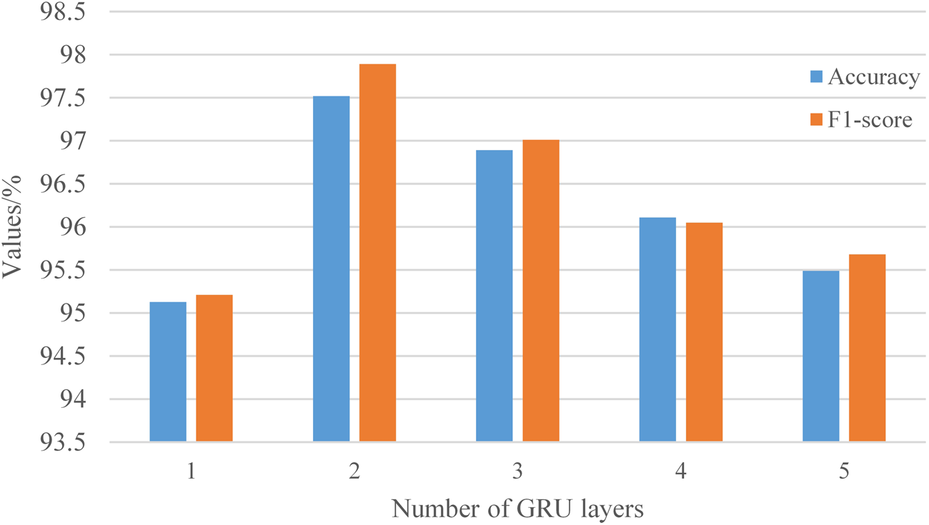In this study, the Bi-GRU structure was employed to replace the Bi-LSTM algorithm in the Siamese network for text information encoding. A GRU (Cho et al., 2014) is a variant of LSTM with a simplified architecture. It employs an update gate in place of the forget and input gates in LSTM and introduces a new hidden unit. The model structure is simpler than that of LSTM and is represented by Eqs 7–10:where and represent the update gate and reset gate, respectively; represents the aggregation of the input and the output of the previous hidden layer ; denotes the sigmoid function, and denotes the hyperbolic tangent function; , , , , , and are the weight matrices used in training.