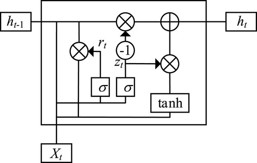 The Gate Recurrent Unit (GRU) is a recurrent neural network (RNN) unit used for sequence modeling. Its structure is illustrated in Figure 8 (Qin et al., 2024). Compared to Long Short-Term Memory (LSTM) units, GRU units have fewer parameters and lower computational costs, demonstrating excellent performance when handling long sequence data (Zhang et al., 2024). Its simplified architectural design and effective gate mechanisms enable it to better capture long-term dependencies within sequences, thereby enhancing the model’s performance on sequence data (Gozuoglu et al., 2024).