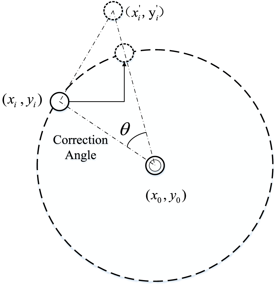 The cluster centers need to be corrected along the tangent direction of the center circle arc. The correction formula and schematic diagram are shown as Figure 3.