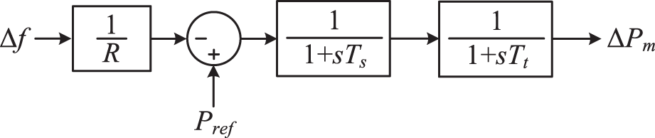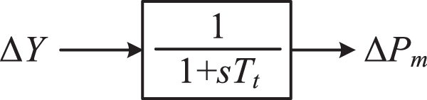 Traditional thermal power generation units employ steam turbines as their prime movers, and the mechanical power output of the prime mover can be controlled by adjusting the valve opening of the steam turbine. The process of loading and unloading the steam chamber and inlet pipe takes a certain amount of time. Therefore, the process of load-frequency control through regulating the steam flow passing through the steam turbine using control valves can be represented by an inertial element with a time constant Tt, as shown in Figure 2. The value of the time constant Tt typically ranges from 0.2 to 0.3 s.
