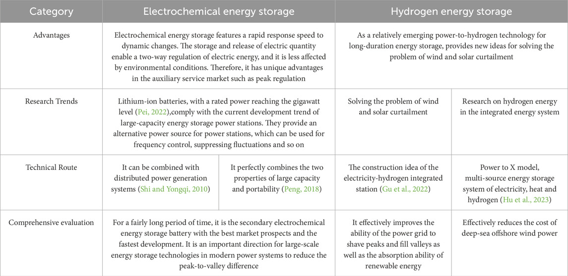 To further balance the problem of power supply and demand mismatch, more auxiliary service providers with sufficient capacity and response capabilities are required to enter the power market. Therefore, new energy storage methods have gradually emerged. The Hornsdale Energy Storage Project in South Australia (capacity 150 MW/194 MWh) delivered over 200 GWh of flexible power support to the grid through frequency regulation and peak shaving services between 2019 and 2022, successfully reducing the regional peak-to-off-peak ratio from 45% to 38%. Based on the current development status of new energy storage in Shanghai and the peak regulation requirements, this paper summarizes the current research trends of new energy storage for peak regulation applications and forms a comparison of subdivided research perspectives and a summary of the technical transformation routes for optimized development, as shown in Table 12.