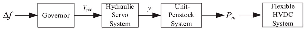 Including opening y, flow q, head h, torque m, speed w and other variables, the turbine and diversion system can be modeled as a nonlinear function, where the opening serves as the input and the torque as the output.
