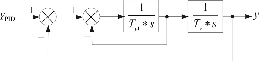 The hydraulic servo system converts electrical signals into mechanical displacement signals with operational force to drive the water guide mechanism. This adjusts the guide vanes’ opening (to increase or decrease water flow) by controlling the water passage. It typically employs a two-stage amplification configuration: the pilot valve-auxiliary servomotor assembly (first-stage amplification) and the main distributor valve-main servomotor assembly (second-stage amplification). When considering these two components as an integrated system, a typical auxiliary servomotor-type structure is generally adopted. The standard hydraulic servo system incorporating both stages can be represented by the model shown in Figure 3.