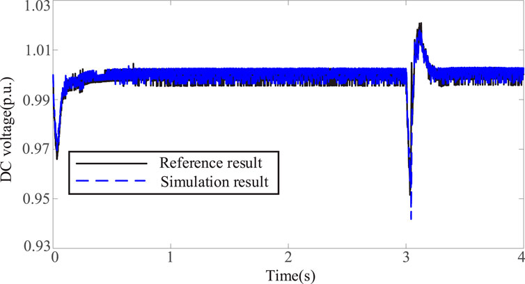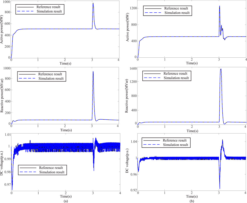 where K denotes the number of sampling points. Pref and Qref represent the reference values of active and reactive power, respectively, on the rectifier side during the time interval from 3 s to 3.5 s, while P and Q correspond to the simulated active and reactive power outputs.