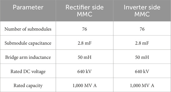To validate the effectiveness of the proposed approach for identifying dominant system parameters, a high-head hydropower MMC-HVDC model was developed using the CloudPSS simulation platform, with its structure and control strategies outlined previously. All simulations were conducted on a desktop computer equipped with 32 GB RAM and a 2.10 GHz Intel Core i7-12700 processor. The simulation parameters of the MMC are listed in Table 1. In practical applications, the MMC-HVDC system may encounter operational faults, during which the control systems function to maintain system stability. Thus, parameter identification under fault conditions holds greater practical significance. In the simulation scenario, a phase-to-phase short-circuit fault lasting 0.1 s was introduced at t = 3s on the rectifier side of the MMC.