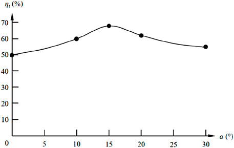 The optimal inclination angle θ is 22°, with minimum turbulence loss f of 0.021 (Wang and Lin, 2025).