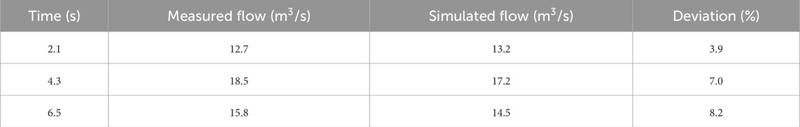 The method of characteristics for discretization was used with a time step Δt of 0.01 s. The results of transient flow simulations conducted with ANSYS Fluent software were compared with the on-site measurements. The maximum flow deviation between the results was 8.2% (Table 4) (National Oceanic Administration, 2025).
