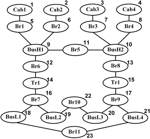 During normal operation of the substation, the node topology of the equipment in the station is shown in Figure 6. Based on the sequential node numbering from smallest to largest, the corresponding adjacency matrix and the fault propagation probability matrix are constructed.