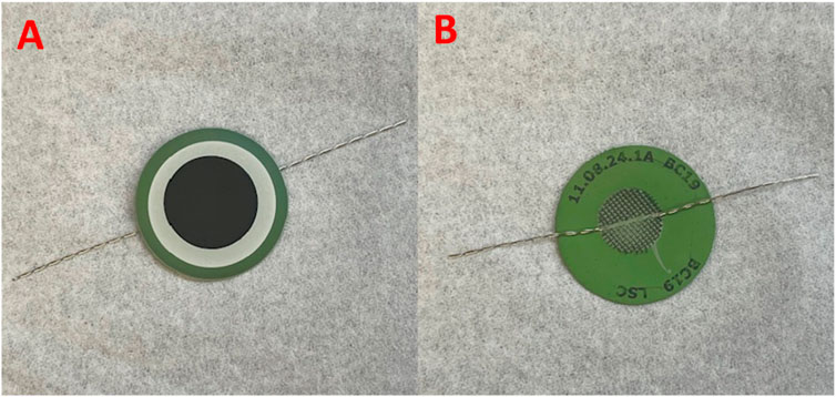 2. Inspect the prefabricated cell for potential manufacturing defects, such as cracks and fractures, delaminated layers, unevenly printed barrier and electrode layers, delaminated current collecting meshes, etc. An example of a prefabricated button SOEC is given in Figure 2.