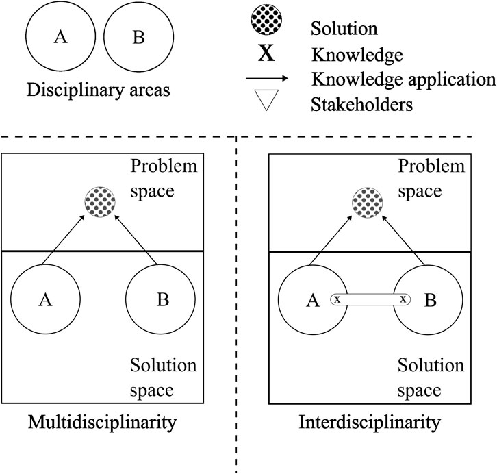 Figure 1. Schematic of multidisciplinarity and interdisciplinarity, adapted from Sakao and Brambila-Macias (2018).