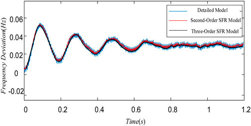 Compared with the third-order model, the proposed second-order SFR model achieves nearly identical dynamic accuracy while requiring fewer parameters and reduced computational complexity. This indicates that the second-order model can effectively reproduce the essential dynamic characteristics of the system without sacrificing precision. Considering both model complexity and accuracy requirements, the proposed model attains an optimal balance between simplicity and fidelity.
