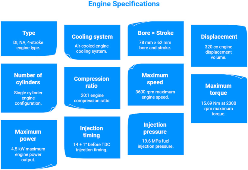 Diesel engines continue to play a pivotal role in transportation, agriculture, and stationary power generation because of their durability, high efficiency, and adaptability (Elkelawy et al., 2025). However, their extensive reliance on fossil-derived fuels has made them a major contributor to greenhouse gas (GHG) emissions, particulate matter (PM), and nitrogen oxides (NOx) (Oberschelp et al., 2023). These pollutants not only exacerbate climate change but also pose significant challenges for air quality and public health. With global commitments to net-zero emissions intensifying, there is a pressing need for near-term decarbonization strategies that can reduce the environmental footprint of compression ignition (CI) engines while preserving their cost-effectiveness and operational reliability (Setiawan and Setiyo, 2022; Setiyo, 2022; Yuvenda et al., 2022).