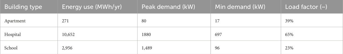 Table 2. Summary statistics for load profiles of case study building types generated from EnergyPlus.