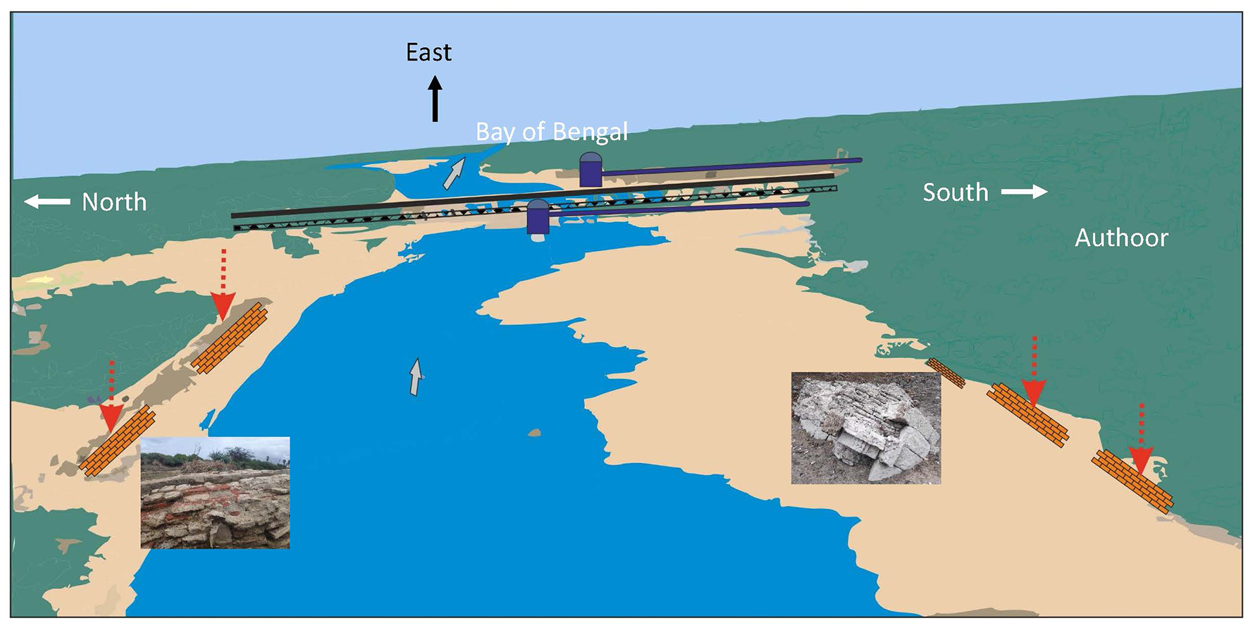 The schematic diagram that shows the brick structures that appeared in the Thamirabarani River.