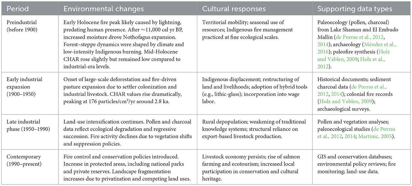 Table 2. Comparative summary of environmental changes and cultural responses over time.