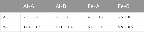 Based on the adsorption capacity and lower standard deviation (cf. Table 2) regarding the selectivity investigation, two systems (Al-A and Fe-B) were chosen for further investigation. For kinetic studies, both systems (see Figure 6; Table 3) showed similar kinetic profiles and fit the PFO and PSO kinetic models. To further evaluate the adsorption kinetics, data fitting according to the PNO model was carried out (see Supplementary Figure S3).