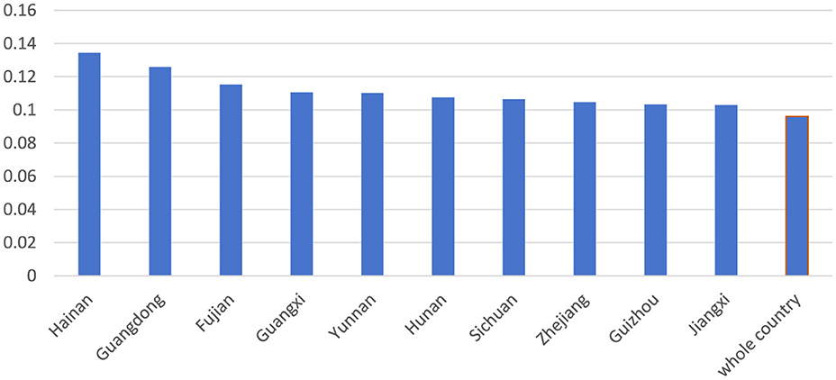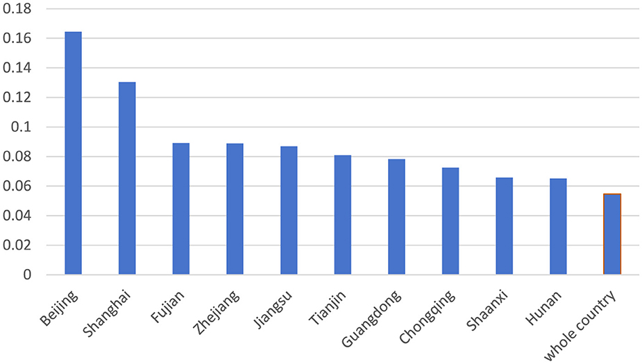 Figure 3. Top 10 provinces in terms of performance growth rate of ecological product value realization mechanism.