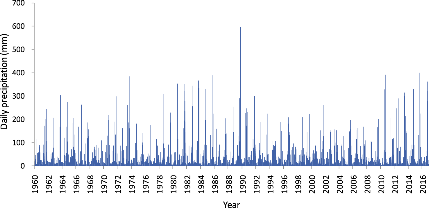Daily precipitation at Pho Chau during 1960–2016.