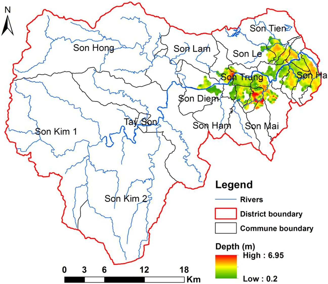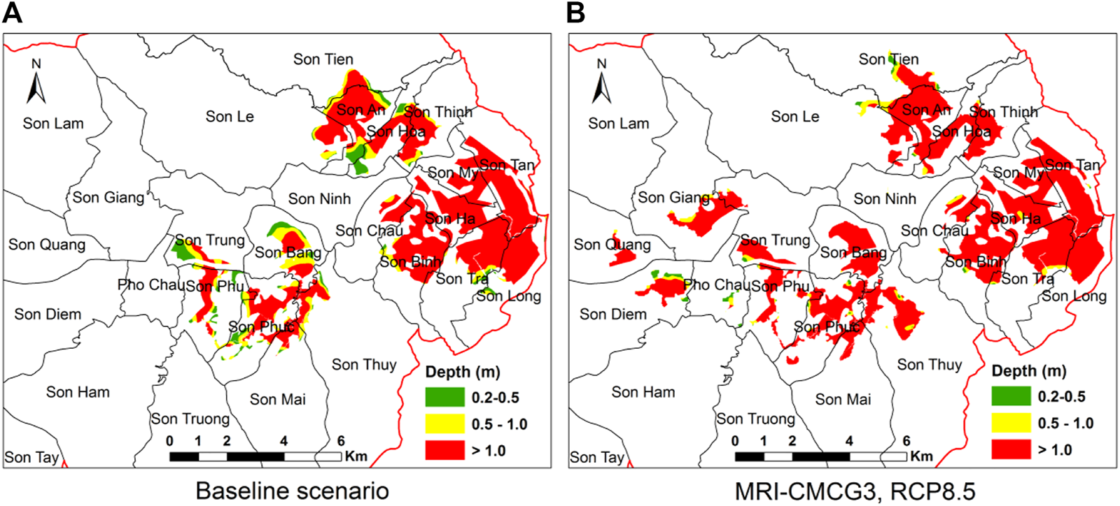 The area of inundation in Huong Son district in the baseline period.