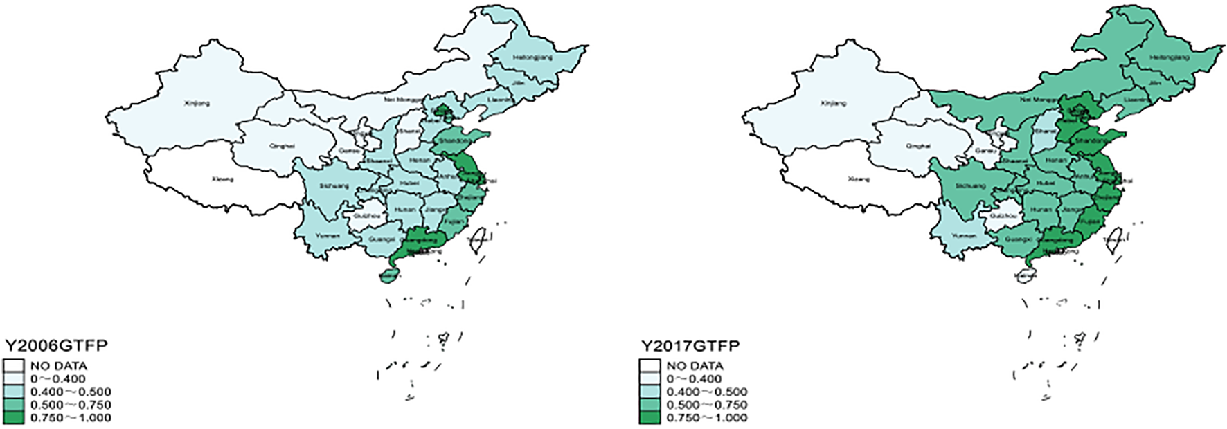 In the past 40 years of reform and opening-up, China’s economy has achieved a “growth miracle,” with gross domestic product surging from approximately 367.9 billion to 99 trillion yuan in 1978 and 2019, respectively1. Simultaneously, eco-damage and environmental pollution have followed one after another, and emissions of pollutants such as industrial waste haze and greenhouse gases continue to surge (Ahmed et al., 2020; Lin et al., 2021). The China Ecological Environment Status Bulletin 2019 shows that among the 337 prefecture-level cities, 180 exceeded the ambient air quality standard, accounting for 53.4%2. Moreover, the problems of a suboptimal energy structure and low-energy utilization efficiency are more prominent. China’s coal consumption has since comprised more than 60% of the total energy consumption. Therefore, although extensive growth modes such as high capital input, high consumption of resources, and high environmental pollution have created an economic “growth miracle,” the ecological and social benefits have been seriously undermined, causing China’s economy to suffer from the low output and low efficiency (Wu et al., 2020a; Wang J. et al., 2021). Currently, China’s economy is in a critical period of transforming development, optimizing economic structure, and changing growth momentum. Promoting efficient change and achieving green economic development has become the major direction of China’s future economic development (Ouyang et al., 2019; Zhang et al., 2020). Normally, improving green total factor productivity (GTFP) can become a win-win situation for both economic and environmental performance. Therefore, for China to nurture high-quality economic development in the new era, the deep-rooted motives damaging coordinated development of the economy and environment and further improving GTFP must be determined.