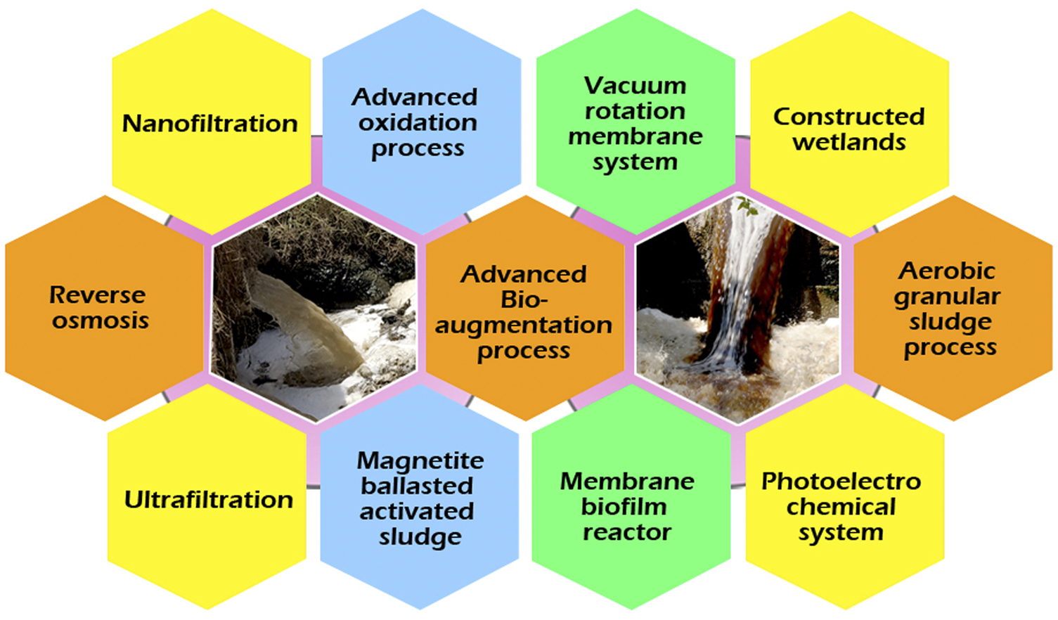 Traditionally, the goal of wastewater treatment was to safeguard accessibility and management for all in a sustainable way. Various materials, processes, and technologies are nowadays available for achieving an efficient treatment and reclamation of wastewater and their reuse in different sectors to ensure public health and ecological safety. In last 2 decades, various decontamination approaches, such as coagulation−flocculation, ion exchange, adsorption, ultrafiltration, nanofiltration, advanced oxidation processes (AOPs), membrane bioreactors (MBRs), chemical oxidation, and advanced biological treatment approaches using algae, bacteria, fungi, and plants in combination are emerging to decontaminate polluted wastewater (Ashraf et al., 2021; Krishnan et al., 2023) (Figure 1). The recent advances and technological development in field of wastewater treatment, recycling, and reuse showed that a quality wastewater can be achieved, suitable for reuse in numerous application, such as aquaculture, industrial processes, agricultural irrigation, etc.