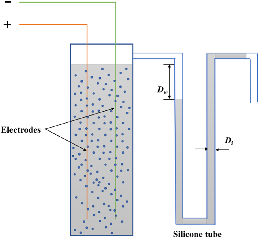 The microbubble production rate (A) was calculated by monitoring the displacement of the water within the silicon tube for 5 min and then averaging the results (Figure 2). A was computed by multiplying the average water displacement by the silicon tube’s cross-sectional area. This is expressed by the following equation:where A denotes the average microbubble production rate (cm3/min), denotes the average water displacement rate (cm/min), and denotes the silicon tube’s interior diameter.