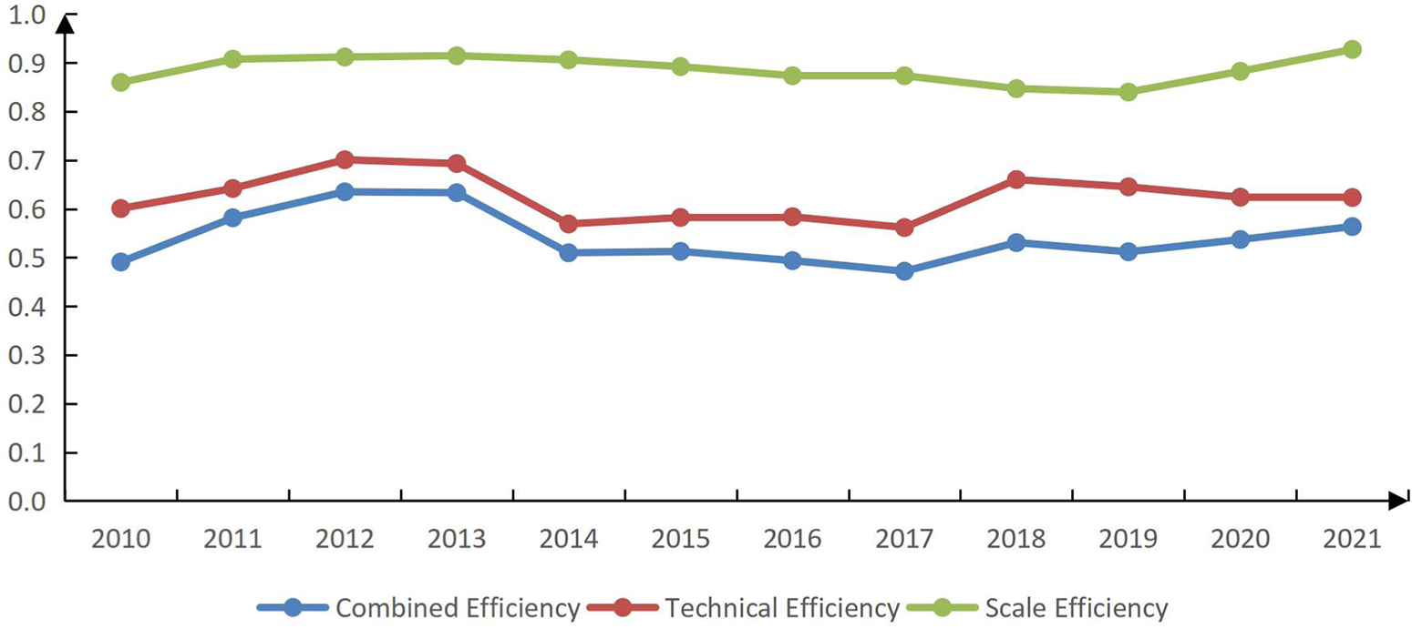 The existing literature has fully demonstrated the important impact of carbon emission efficiency on economic growth and puts forward the concepts of carbon productivity (Wang et al., 2017), carbon emission intensity (Wang and Zheng, 2020), carbon emission performance (Wang et al., 2020), and carbon emission accounting (Hu et al., 2022). These studies are closely related to the coordinated realization of sustainable economic development and carbon reduction in the Report on The Work of The Government of 2021. Carbon emission efficiency fully expresses the supporting and leading role of carbon reduction in high-quality economic development, consistent with the relevant discussion of opening up the path of green and low-carbon transformation development with Chinese characteristics in the academic circle and police departments.