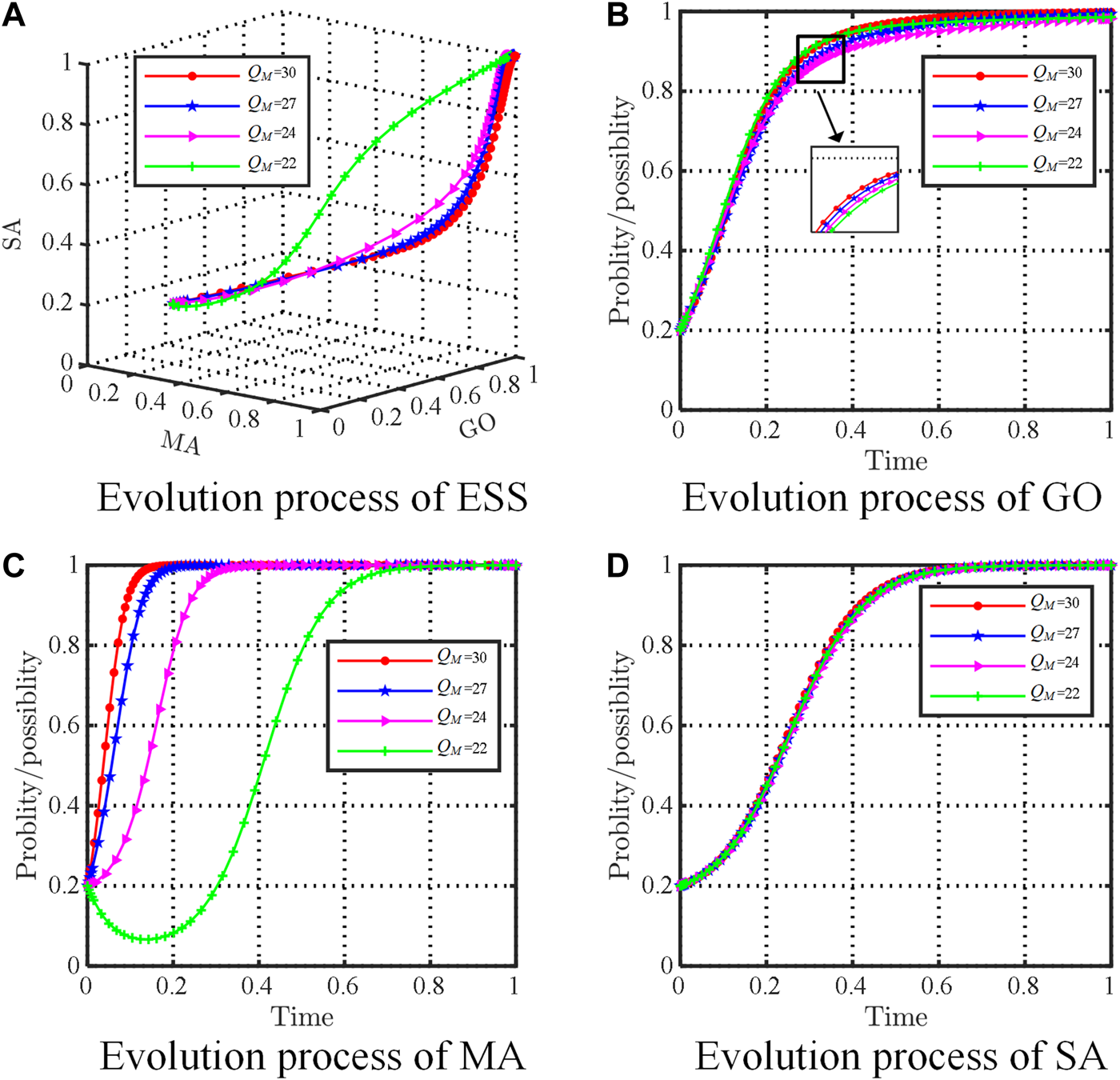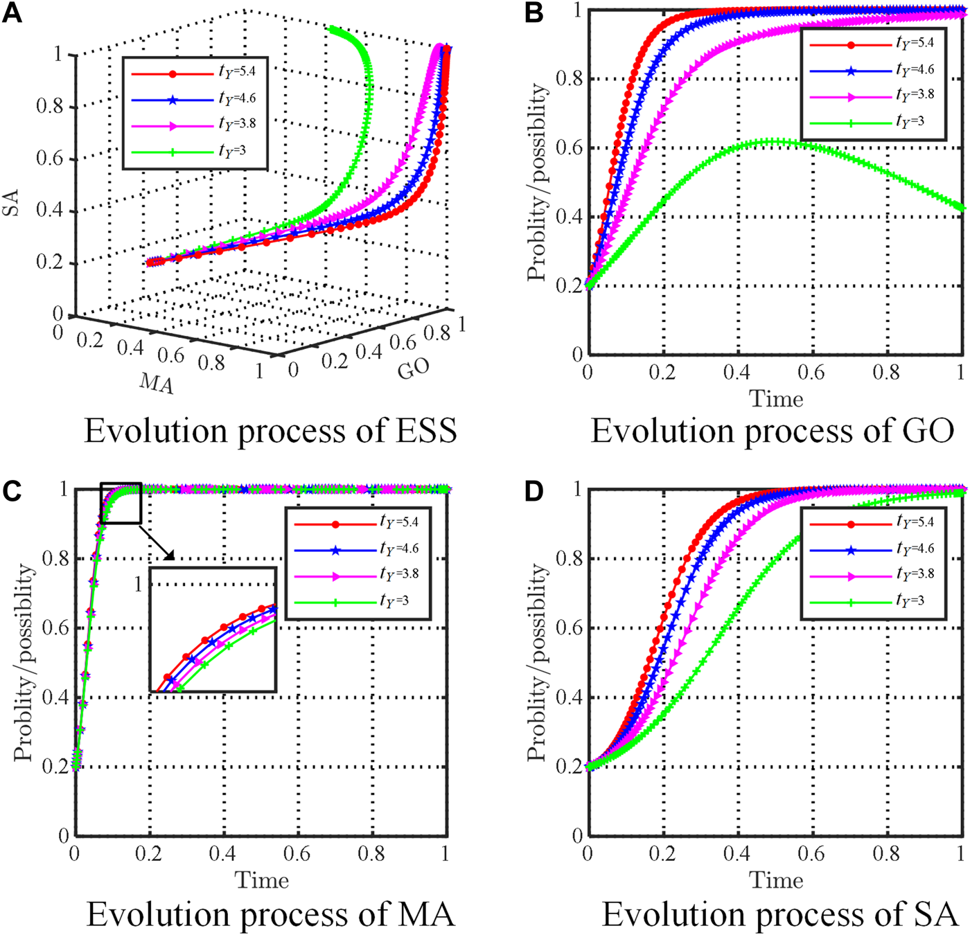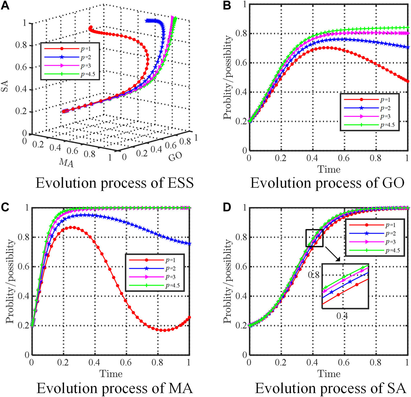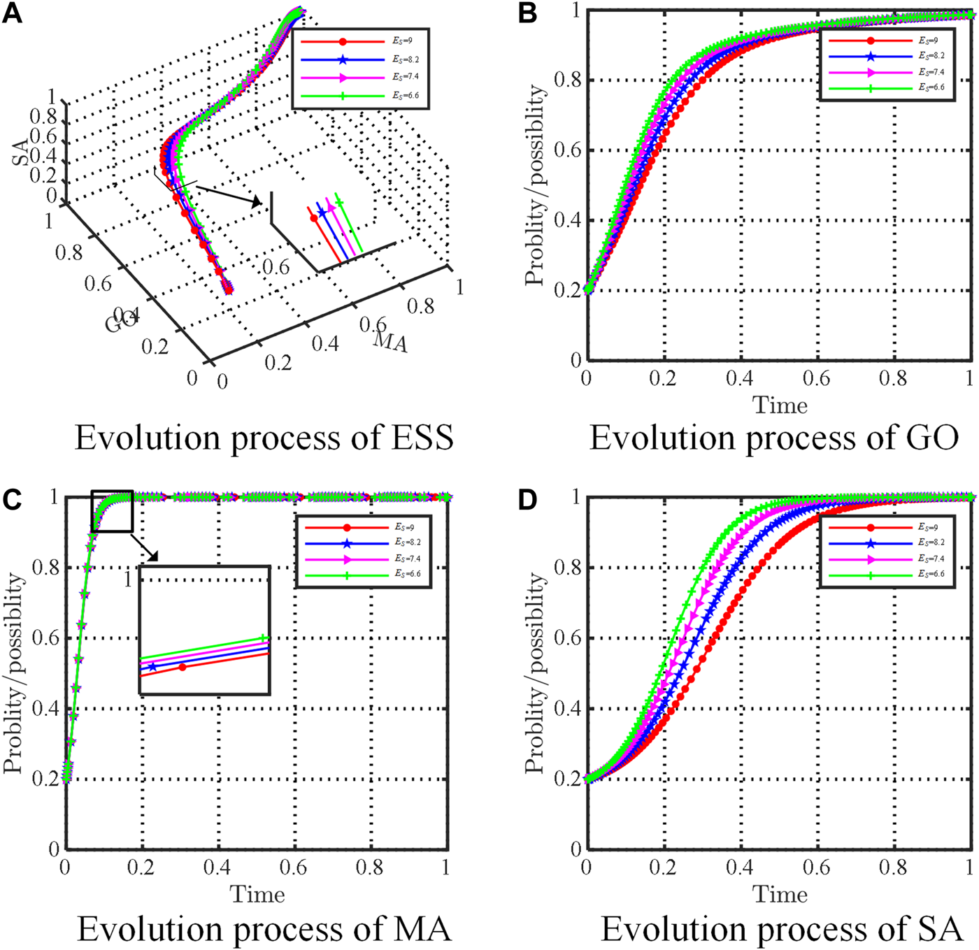 (1) As shown in Table 1, all three players in the evolutionary game, the government, major airlines and small and medium-sized airlines, have two strategies. The results of their strategy choices evolve over time and stabilize at the optimal strategy. (Wang et al., 2022).