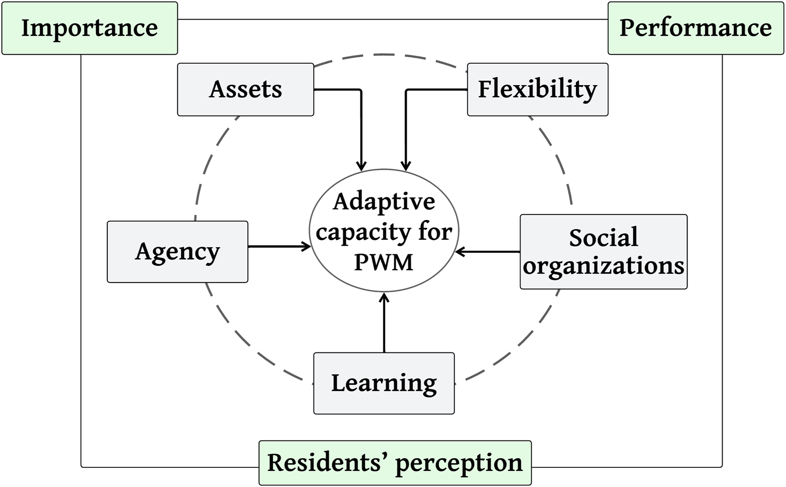 3.2 Residents’ perceived importance–performance of adaptive capacity for PWM