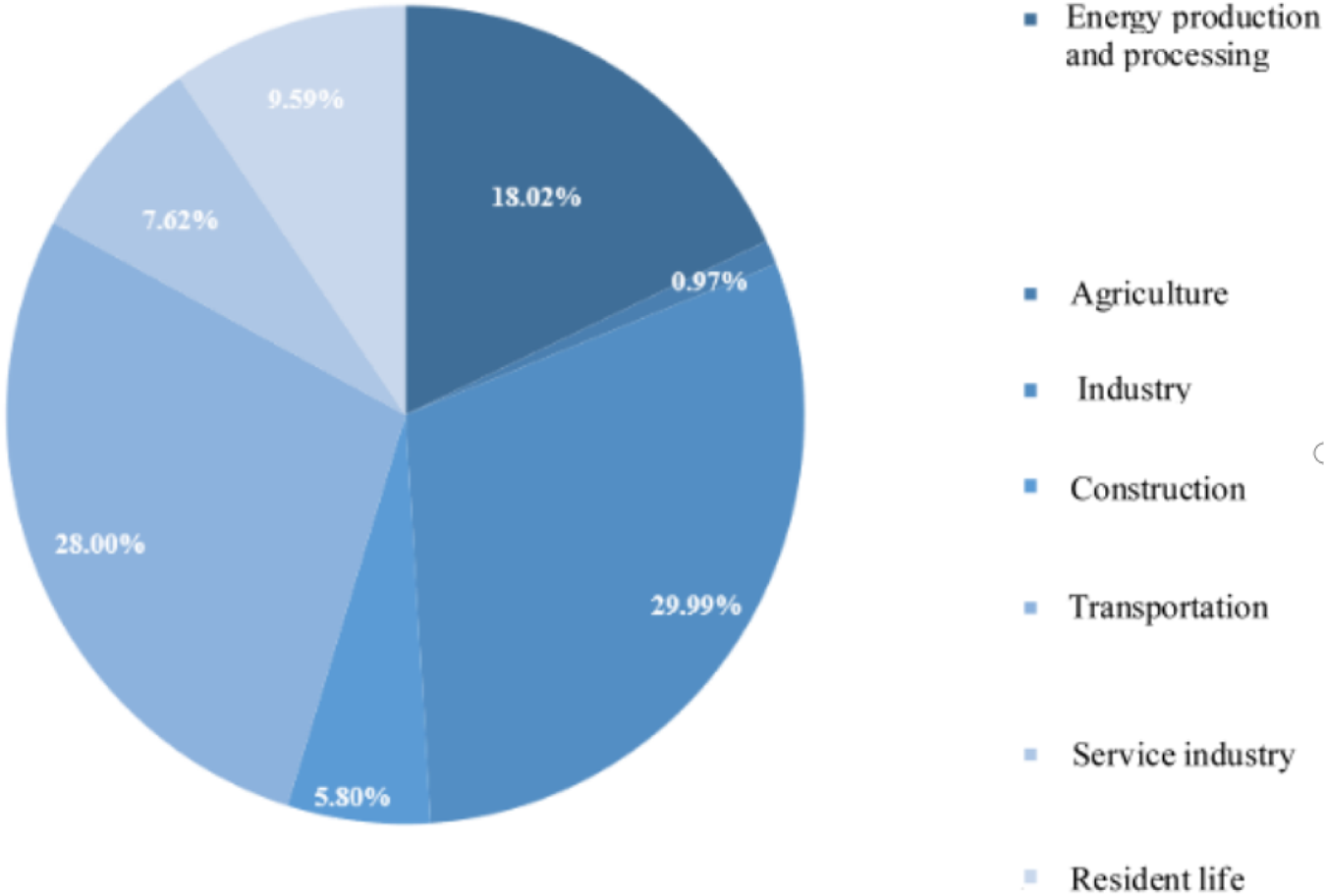 Within the industrial sector, four high-energy-consuming industries represent about 75% of total sector energy consumption. Despite this, oil products still play a significant role in Chengdu’s energy structure, indicating a pressing need for improved energy efficiency and energy-saving technologies.