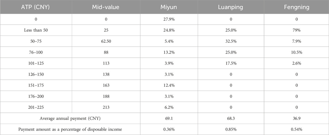 The Chinese central government has made substantial investments in rural development under national policy frameworks (Ye et al., 2018). However, this investment has been imbalanced, contributing to widening regional disparities (Liu et al., 2013), as evident in the contrasting cases of Miyun, Fengning, and Luanping counties. Miyun County, located within Beijing, benefits significantly from strong municipal government investment, resulting in a more advanced economic status and environment quality compared to the other two counties situated in Hebei province. Meanwhile, this high levels of government intervention fostered stakeholder dependency. This dependency, potentially diminishing their perceived personal responsibility and initiative (evidenced by sentiments like “If the government handles it, why should I pay extra?”), can lead stakeholders to perceive individual contributions as less impactful, thereby reducing their incentive to pay. As for Fengning County, it is one of Hebei’s poorest counties. According to conventional economic theory, assuming baseline environmental quality is constant, stakeholders with higher incomes are generally expected to demonstrate a greater willingness to pay (WTP) for environmental protection than those with lower incomes (Ivanova and Tranter, 2004). Consistent with this expectation, poor economic development in Fengning County has led to noticeably lower absolute payments for environmental protection compared to the other two counties.