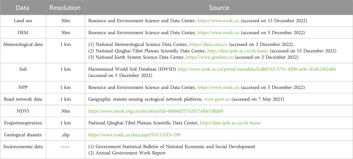 GEP is a monetary measurement approach employed to evaluate the service functions provided by ecosystems as well as the value of the goods and services they generate (Lajoie-O’Malley et al., 2020; Schirpke et al., 2020). Land serves as the carrier of ecosystem services. In order to meet the increased demand for these services driven by significant population growth, certain regions have commonly experienced over exploitation of land resources, leading to ecological degradation (Langemeyer and Connolly, 2020; Schirpke et al., 2020; Li et al., 2024; Zhang et al., 2023). Changes in land use/cover (LULC) are closely related to ecosystem services. Variations in land use types, patterns, and intensity affect the ecosystem services (Fang et al., 2022; Liu L et al., 2023). The changes in GEP quantitatively and thoroughly reflect the variations in ecosystem services caused by regional LULC changes, which significantly impact the long-term development of both the natural environment and human society (Luo et al., 2023; Su et al., 2023). Therefore, the GEP of a region serves as an indicator of the regional development and utilization status, and is also a key metric for assessing the relationship between human activities and land use. Intensive land use continuously and significantly alters the LULC pattern, thereby influencing the supply and spatial distribution of ecosystem services. A structurally imbalanced LULC configuration severely constrains the full realization of ecosystem service values (Cao et al., 2021; Chen et al., 2021; Shi et al., 2020; Peng and Wang, 2019; Ye et al., 2018; Zhang et al., 2020). For example, China’s rapid socio-economic development has imposed significant pressure on the goal of building an ecological civilization. Achieving comprehensive, coordinated, and sustainable development urgently requires exploring the relationship between LULC changes and ecosystem service values, in order to promote a virtuous cycle of sustainable ecosystem utilization.
