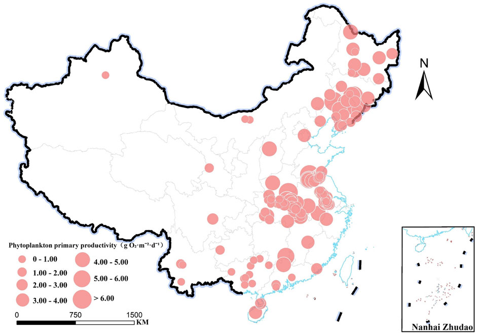 Phytoplankton primary production estimation methods include light-dark bottle incubation, VGPM modeling, and carbon isotope techniques (13C/14C), deriving PP from dissolved oxygen changes, chlorophyll/environmental parameters, and carbonate isotopes, respectively (Pratt and Berkson, 1959; Cox et al., 2015; Lan et al., 2020; Lu et al., 2023). Methodological limitations and environmental factors cause significant PP discrepancies across methods or sites. Thus, this study exclusively uses light-dark bottle-sourced PP data to minimize methodological errors.