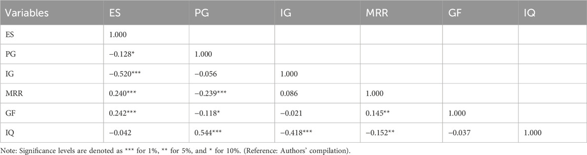 Table 1 shows the main variables used in this study, which focuses on E7 countries—Brazil, China, India, Indonesia, Mexico, Russia, and Turkey—between 1996 and 2023. We chose 1996 as the start year because it was the first year with consistent data on institutional quality. This also ensures that the panel dataset is consistent across all indicators. We used the exponential smoothing method to fill in any gaps in the data. The advantage of this method is that it fills gaps in the dataset while keeping the time series patterns as close to their original shape as possible.