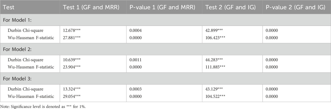 To fix this, we employ the Durbin-Wu-Hausman test, which uses instrumental variables to check endogeneity and ensures that the coefficient estimates are robust (Liang and Yang, 2019). This approach allows to re-estimate the key relationships while controlling for potential simultaneity, thereby validating the robustness of our main results.